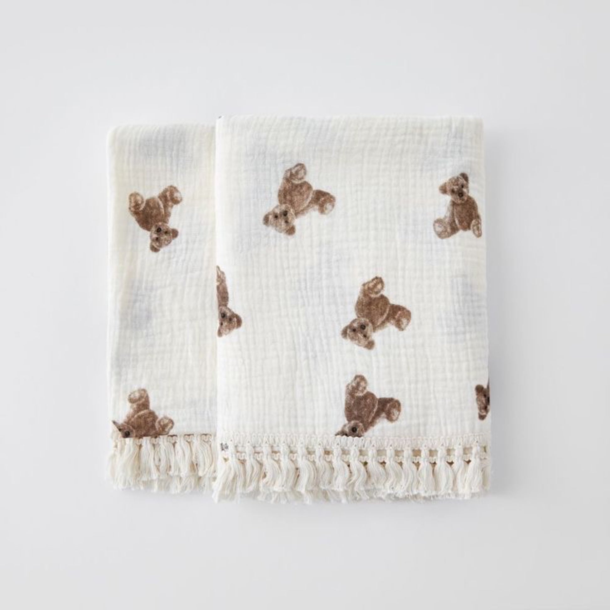 Teddy Bear Muslin Tassel Blanket Swaddle.